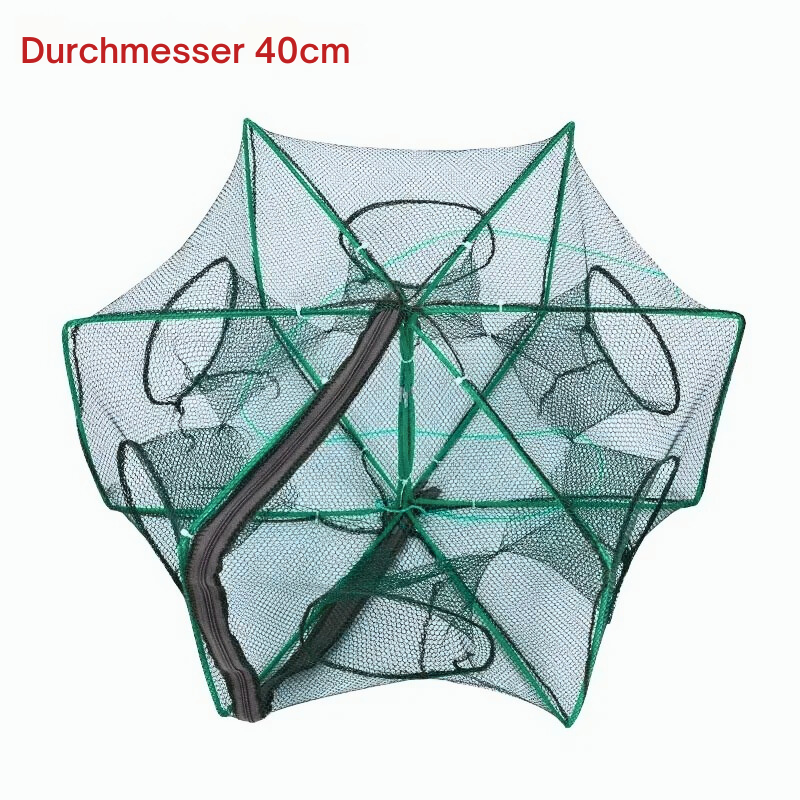 Das stabile Mesh-Material ist besonders langlebig und widerstandsfähig, damit du dich ganz auf das konzentrieren kannst, was wirklich zählt: den Fang. Ob Krebse, Garnelen, kleine Fische oder Aale, das Netz schnappt zuverlässig zu und sorgt dafür, dass jedes Mal ein Stück Natur mit nach Hause bringt.