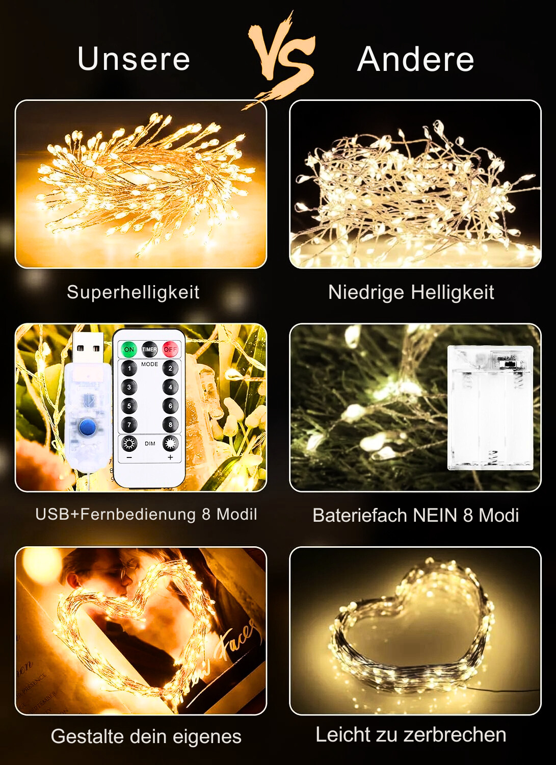 Verwandeln Sie jeden Moment in reiner Magie mit dem Lichtzauber ProLine bringt stimmungsvolles Licht in jeden Raum und jeden Anlass. Ob romantische Abende, fröhliche Partys, festliche Hochzeiten oder gemütliche Wintertage – diese Lichterkette sorgt immer für das perfekte Ambiente.