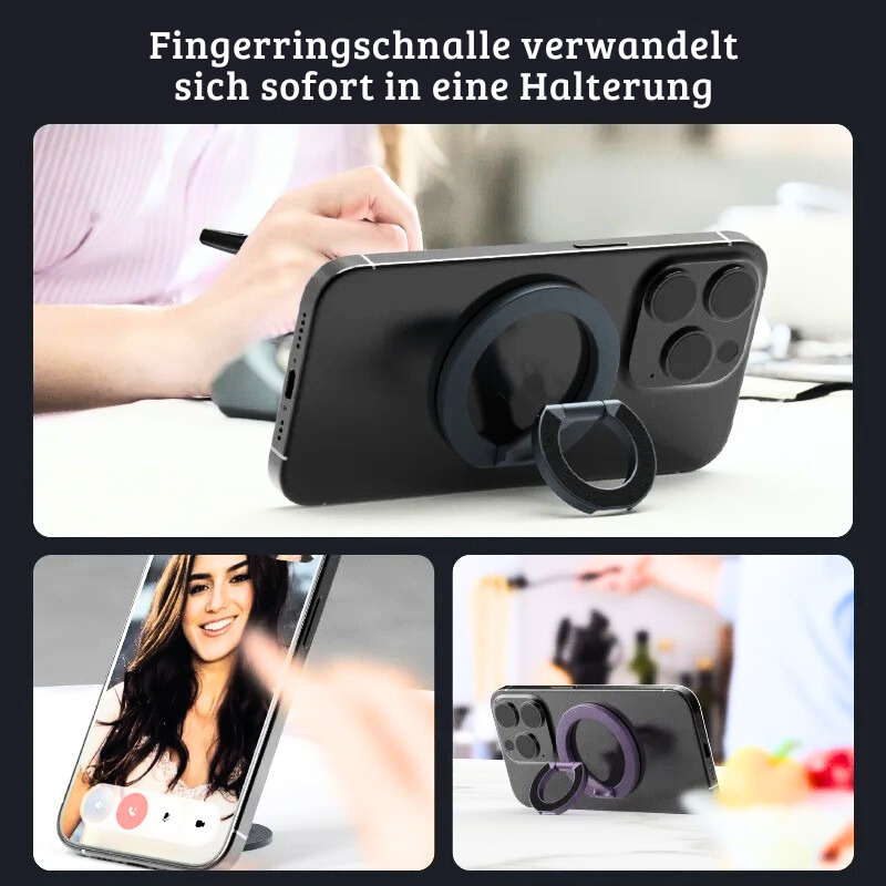 Nutze ihn als sicheren Ringgriff, um dein Handy immer fest im Griff zu haben, oder klappe ihn auf und verwandle ihn in einen praktischen Ständer für Videos, Video-Calls oder entspanntes Scrollen. Doppelseitig und flexibel passt er sich deinem Alltag perfekt an ob unterwegs, im Büro oder zu Hause.